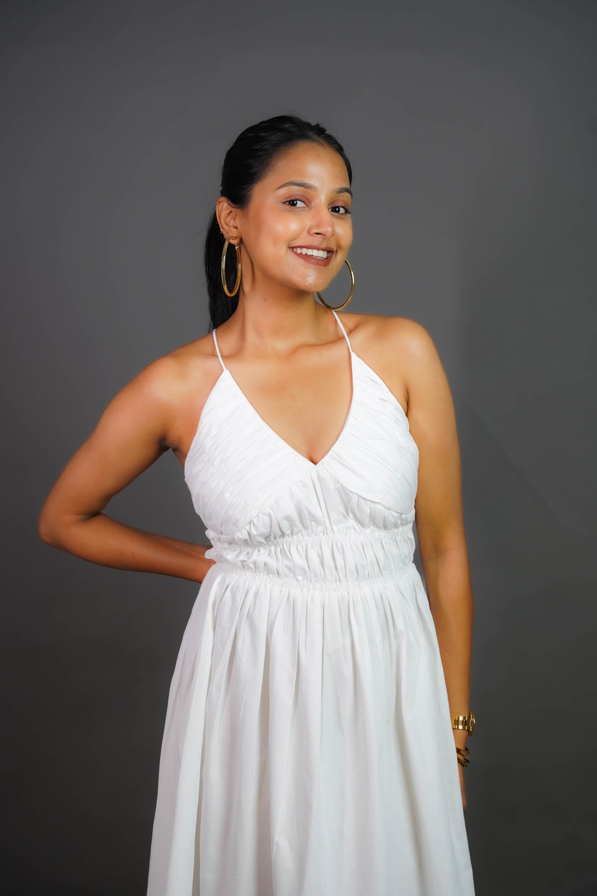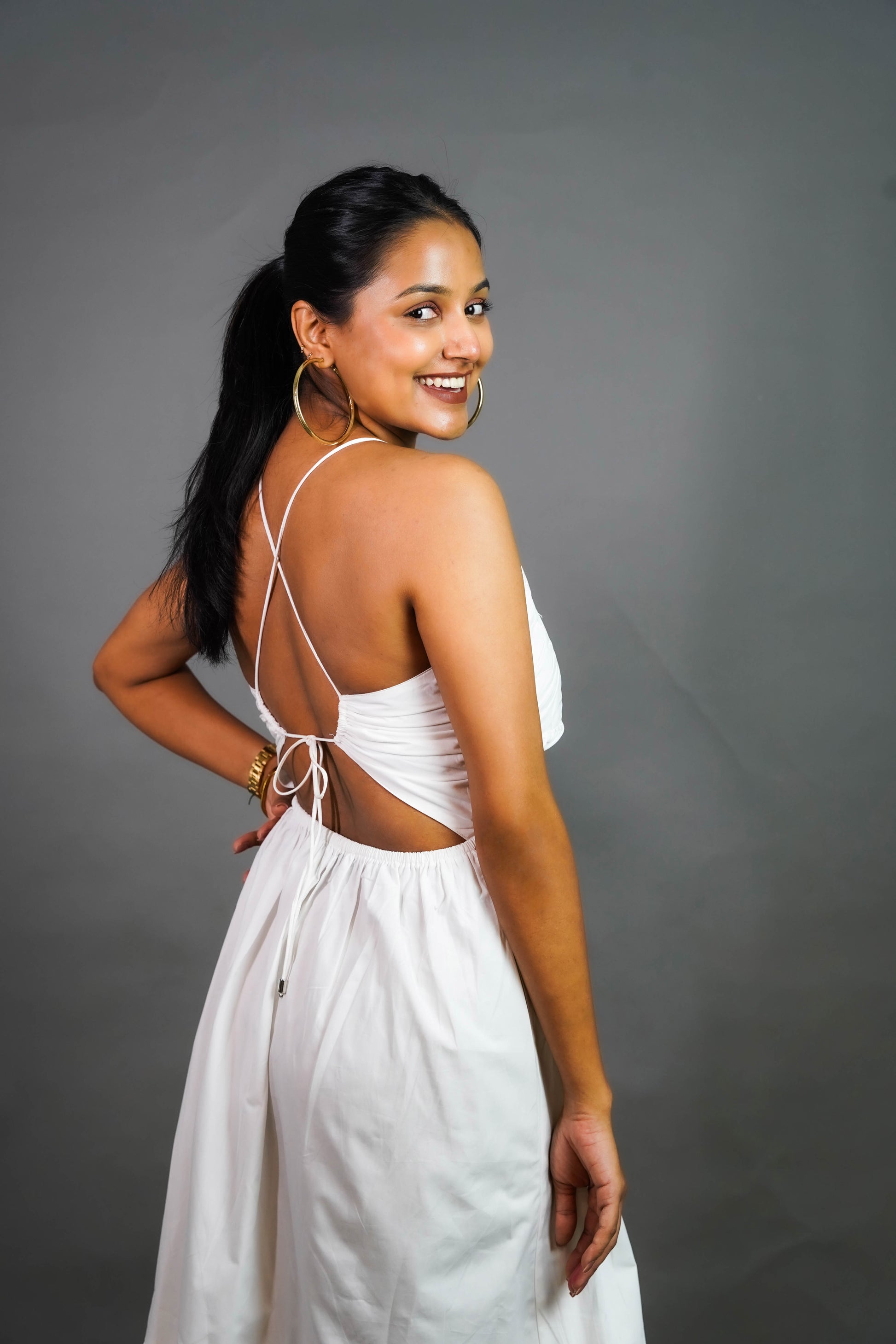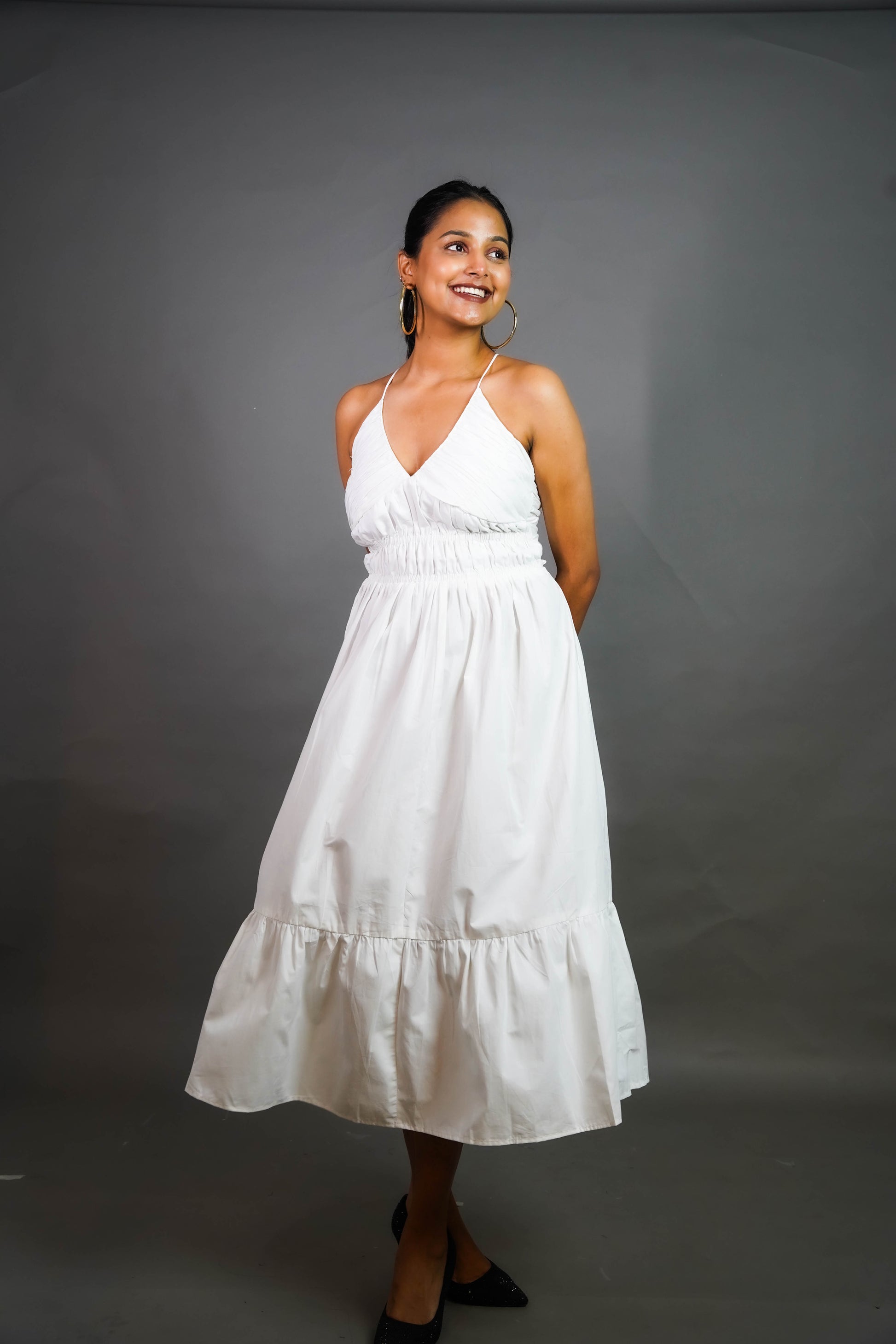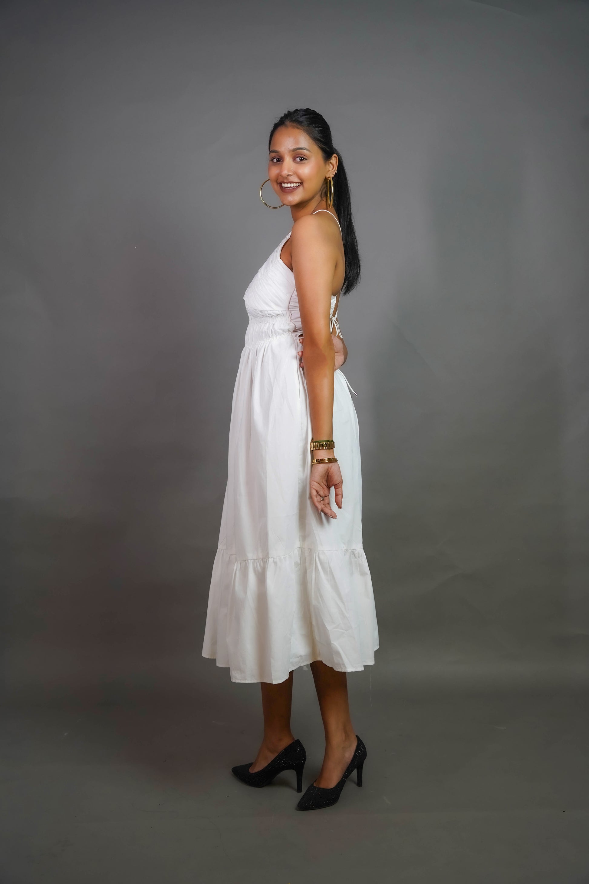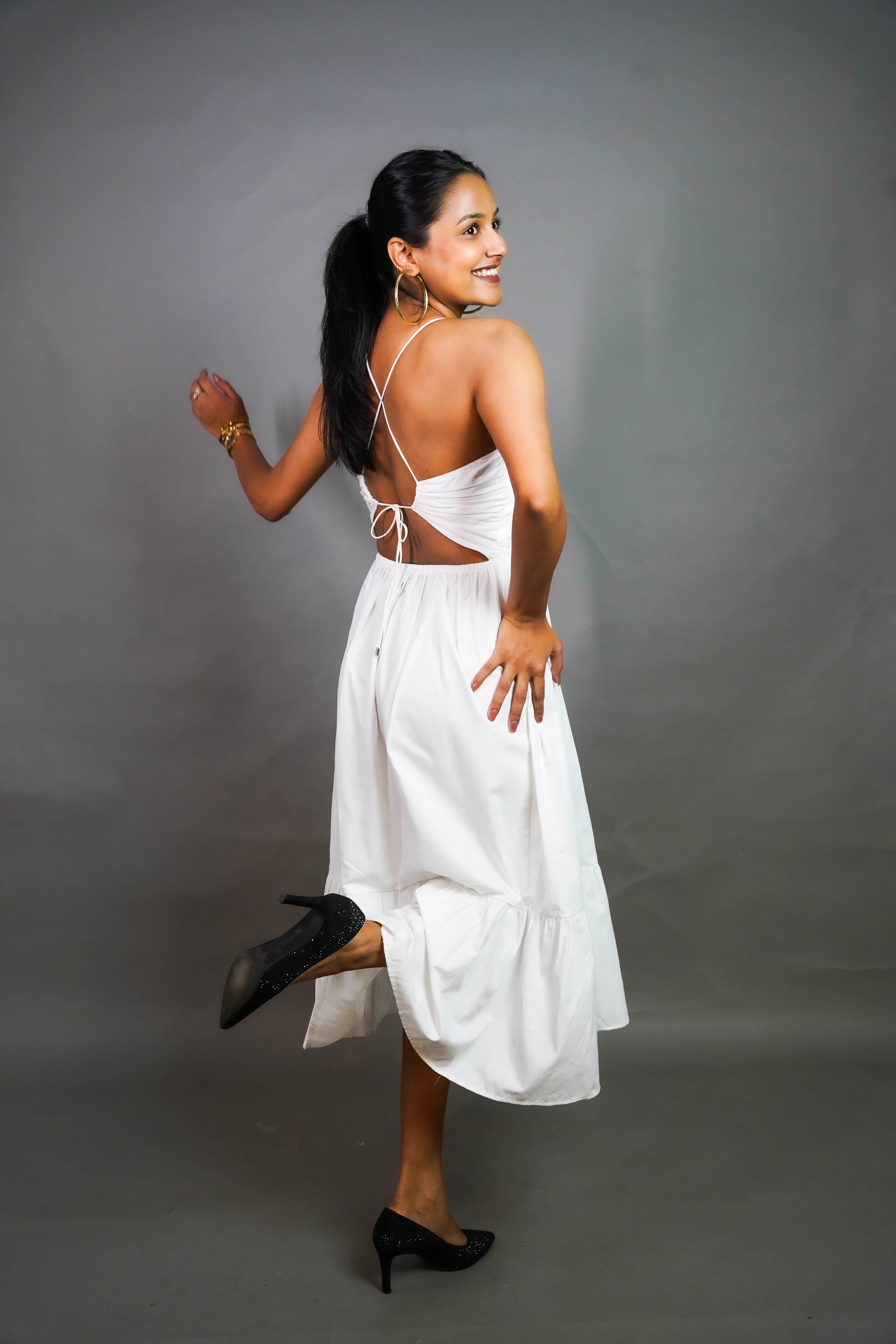 Let your style take flight with the Swan Whisper Dress. This backless beauty features a halter neckline, flowing silhouette, and ruffled hem for effortless elegance. Perfect for brunch dates, vacations, or beach getaways.
